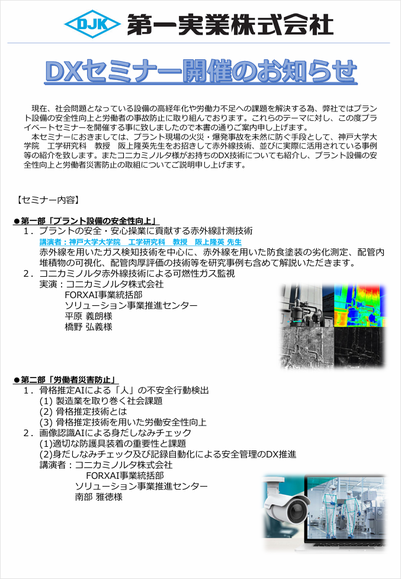 またコニカミノルタ様がお持ちのDX技術についても紹介し、プラント設備の安全性向上と労働者災害防止の取組についてご説明申し上げます。